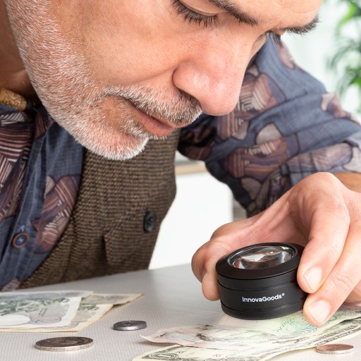 Praktyczna i kompaktowa o niewielkich rozmiarach lupa o 5-krotnym powiększeniu, z oświetleniem LED (0,08 W). Jej niewielka konstrukcja (ø 5 cm) sprawia, że zajmuje bardzo mało miejsca, dzięki czemu łatwo można ją przenosić i przechowywać w dowolnym miejscu. Sprawdza się idealnie do czytania tekstów pisanych drobnym drukiem, takich jak ulotki, a także do podglądu szczegółów na znaczkach, mapach, monetach, fotografiach, itp. Jest również bardzo przydatna do szycia, oglądania ściegów na tkaninach itp. Lupa została wyposażona w mały przycisk do włączania i wyłączania światła LED i działa na 2 baterie CR1220 (w zestawie).