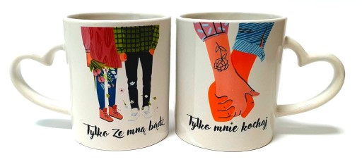 Napis na kubkach - "Tylko mnie kochaj" oraz "Tylko ze mną bądź".