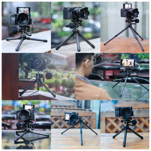 Statyw wykonany z włókna węglowego udźwignie nawet 2 kilogramy, więc poradzi sobie z całym zestawem do vlogowania lub fotografowania.
