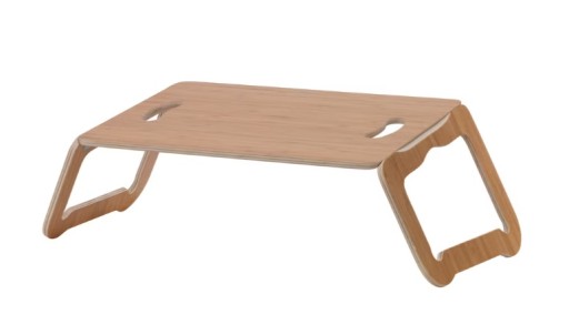Możesz zaoszczędzić miejsce wieszając podpórkę pod laptop na ścianie za wycięte uchwyty - nóżki składają się płasko pod spodem.