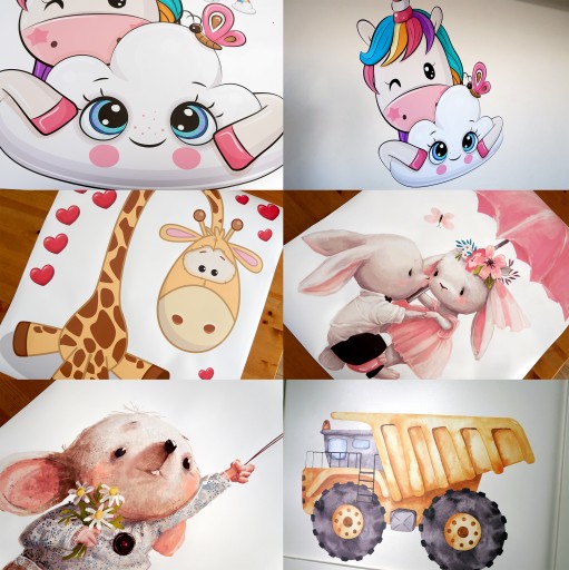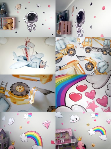 - Naklejki nadają się na różne płaskie powierzchnie - ściany, drzwi, meble, stoliki, lodówki itp.