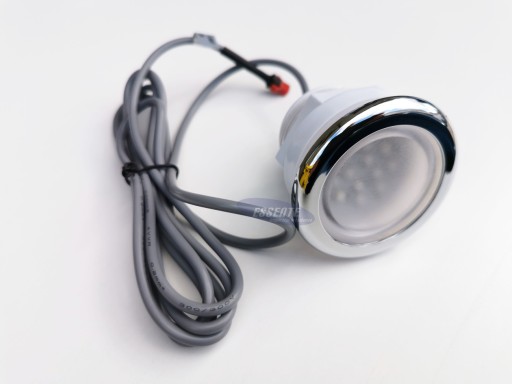 Lampka oświetleniowa LED stosowana w wannach z hydromasażem. Oświetlenie LED w 7 kolorach, zasilanie AC 12V. Lampka wykonana z wysokiej jakości tworzywa sztucznego, obudowa w kolorze białym, chromowany pierścień maskujący widoczny od strony zewnętrznej. Pełna specyfikacja techniczna niżej.