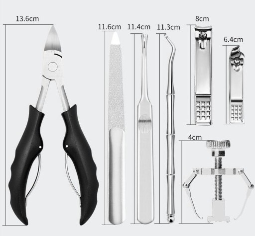 Zestaw 7 sztuk różnych narzędzi do bezpiecznego i łatwego w użyciu. Idealny jako prezent, dzięki któremu można mieć zdrowe i piękne paznokcie.