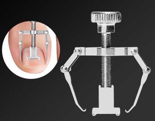- Założyć klamrę na paznokieć zaczepiając boki wrośniętych paznokci hakami i dokręcić.