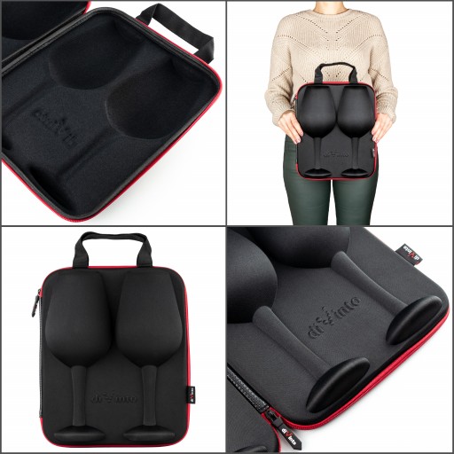 Eleganckie czarne etui diVinto wykonane jest z bardzo wytrzymałego materiału, który pozwala przewieźć szkło w idealnym stanie nawet na drugi koniec świata. W zestawie znajdują się też dwa kieliszki do wina, bo radością trzeba się dzielić! Dzięki nim będziecie mogli skupić się na przyjemnościach, zamiast na ciągłym dolewaniu alkoholu, który zawsze za szybko się kończy.