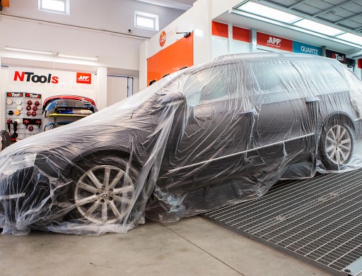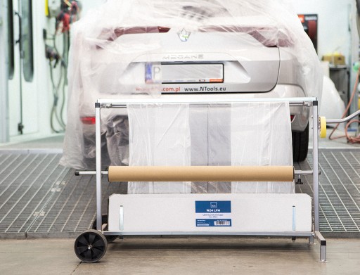 Szybkie osłanianie pojazdów przez jedną osobę bezpośrednio z opakowania lub ze stojaka do folii.