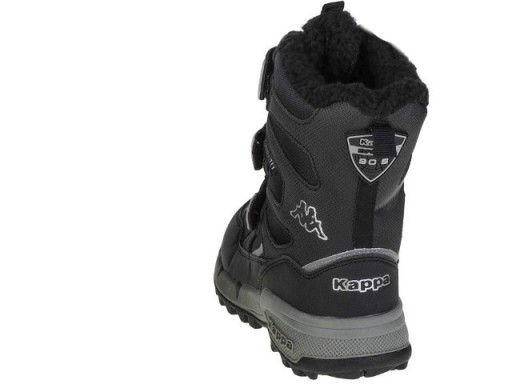 Dziecięce śniegowce Kappa wyposażono w wodoodporną membranę KappaTEX chroniącą przed dostawaniem się wilgoci do wewnątrz. Dziecięce buty zimowe w stonowanej kolorystyce posiadają grubą podeszwę z głębokim bieżnikiem co zapewnia dobrą przyczepność w trudnych warunkach. Wnętrze cholewki dodatkowo wyścielono miłym w dotyku meszkiem zwiększającym komfort termiczny.