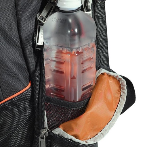 Flight ma również suwak oraz górną kieszeń podszyta miękkim materiałem do przechowywania odtwarzacza muzyki. Kieszeń ta posiada dedykowany otwór na słuchawki, kieszeń zabezpiecza odtwarzacz przed pyłem lub deszczem. Istnieją również dwie wygodne kieszenie boczne, które zapewniają Ci jeszcze więcej miejsca do przechowywania przedmiotów, takich jak ładowarki telefonu lub kompaktowy aparat cyfrowy. Jedna z kieszeni komory bocznej ma również dedykowany regulowany pasek do przechowywania butelki z wodą.