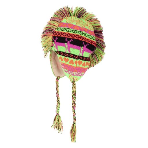 Kolorowa czapka dzianinowa z irokezem.