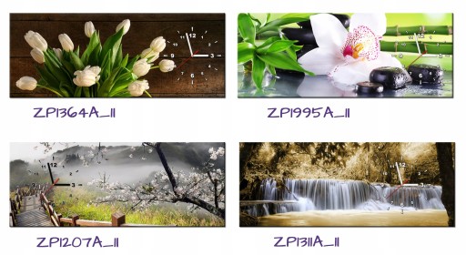 - Prezentowane wzory to miniatury właściwych obrazów. W przesycłe otrzymają Państwo duże obrazy z zegarem prezentujące znakomitą jakość oraz dokładność szczegółów.