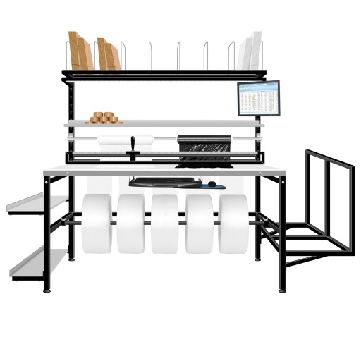 Profesjonalnie przystosowane stanowisko pracy osoby pakującej paczki przyniesie wymierne korzyści czasowe a co za tym idzie również finansowe Twojej firmie. Jednorazowa inwestycja spowoduje znaczący wzrost efektywności, ze względu na optymalizację czasu - wszystko co konieczne zawsze znajduje się pod ręką, jest łatwiejsze w użyciu i nie wymaga takiego zaangażowania jak podczas pracy bez tego typu narzędzi.