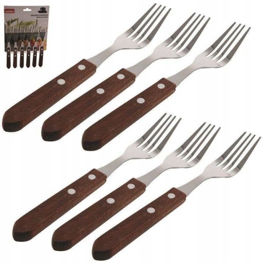 ✅ Zestaw 6 widelców ze stali nierdzewnej z drewnianymi uchwytami.