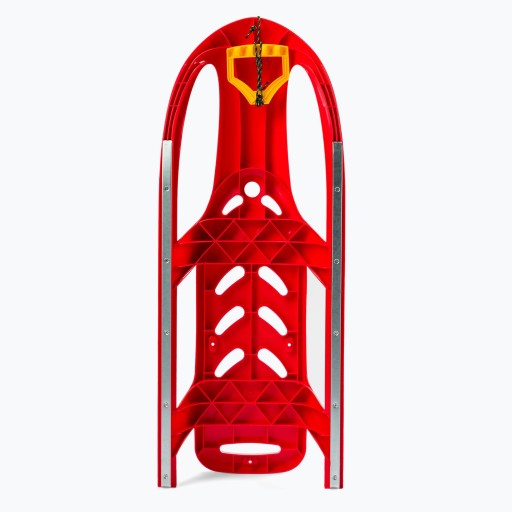 Lekka konstrukcja z tworzywa sztucznego gładko sunie po śniegu dzięki metalowym płozom.