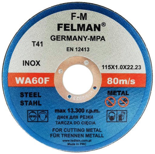 Tarcze korundowe do cięcia stali czarnej i metali nieżelaznych.