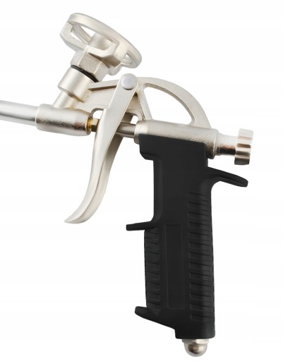 Narzędzie posiada metalowy korpus, dzięki czemu jest wytrzymałe i łatwe w użyciu. Stosunkowo niska waga powoduje, że nie przysparza problemów podczas przechowywania i transportu. Pistolet posiada pokrętło regulacyjne, które umożliwia zmianę zakresu działania spustu uwalniającego daną ilość substancji z pojemnika ciśnieniowego. Można w ten sposób dostosować ilość wydostającej się pianki z dyszy, co jest również pomocne w precyzyjnym aplikowaniu preparatu montażowo-izolacyjnego. Całkowite zakręcenie pokrętła regulacyjnego odcina zupełnie dostęp powietrza do znajdującej się w dyszy pianki, co sprawia, że preparat nie zastyga, a po odkręceniu pokrętła, nadaje się ponownie do użycia. Dla lepszej koordynacji ruchów narzędziem, rękojeść została wykonana z tworzywa sztucznego. Specjalnie wyprofilowany uchwyt zapobiega wyślizgiwaniu się przyrządu z ręki. Jest to szczególnie istotne w przypadku pracy w trudno dostępnych miejscach lub w wymagających warunkach wewnętrznych bądź atmosferycznych.