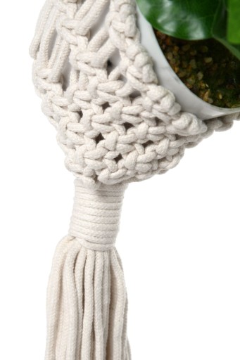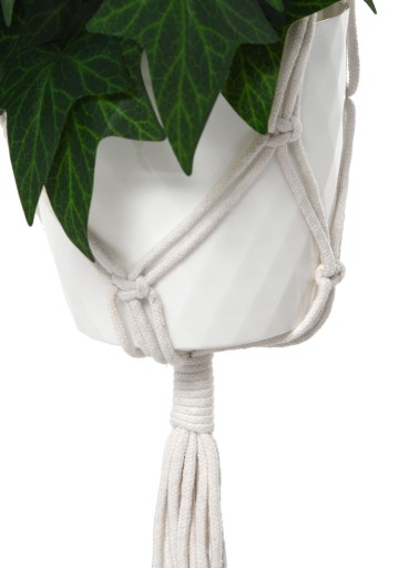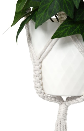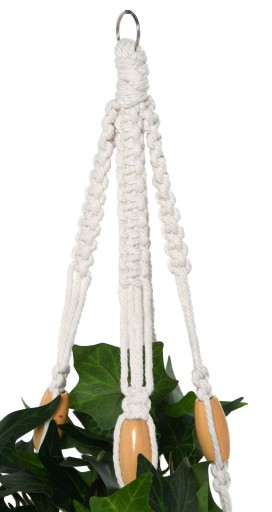 Nie ma obawy także przed zerwaniem sznurków pod wpływem ciężaru doniczki z ziemią i rośliną, ponieważ sznurek z którego jest wykonany jest wytrzymały