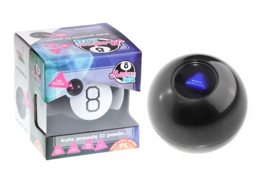 Magiczna kula nr 8 - super kultowy produkt w oryginalnej angielskiej wersji odpowie na wszystkie nurtujące Cię pytania. Od kiedy zaczęła pojawiać się w amerykańskich filmach jak choćby Interstat 60 czy w serialu dr House stała się nieodzownym gadżetem praktycznie każdej amerykańskiej rodziny. Następnie zyskała ogromną popularność na całym świecie. W końcu każdy z nas zmaga się na co dzień z co najmniej setką trudnych pytań. Jednak dzięki kuli nr 8 nie musisz już godzinami głowić się nad codziennymi dylematami czy dręczącymi Cię pytaniami egzystencjalnymi, nie musisz już też dzwonić do wróżki, czy wróżyć z fusów, wystarczy że potrząśniesz swoją własną magiczną kulą i pozwolisz jej zadecydować.