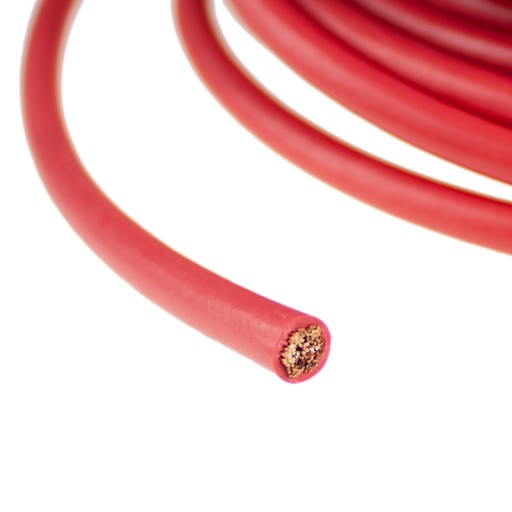 Wysokiej jakości przewód plusowy, do akumulatorów, w czerwonej otulinie, bez konektorów.