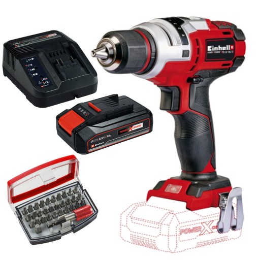 АККУМУЛЯТОРНАЯ ДРЕЛЬ-шуруповерт EINHELL TE-CD 18 Li E 2,5 Ач ZS + НАСАДКИ