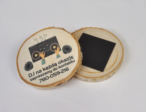 Na drewnianym plastrze można umieścić dowolną grafikę, logotyp czy napis.