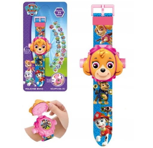 - Zegarek posiada projektor do wyświetlania 24 obrazków z postaciami z bajki "PSI PATROL".