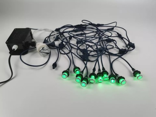 Pozwoli Ci uzyskać spektakularne efekty oświetleniowe, gdy zrobi się ciemno. Zestaw zawiera 10 lampek led, zasilacz, panel dotykowy służący do zmiany kolorów. Zasilanie 230v