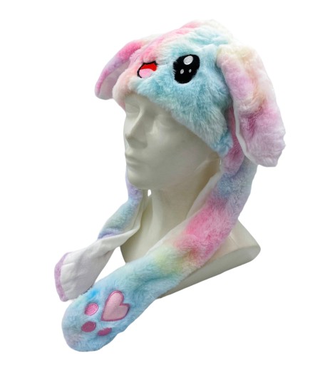CZAPKA KRÓLIK TĘCZOWY RUCHOME USZY LED