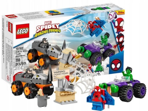 Superbohaterowie w wieku od czterech lat kierują pojazdami i pędzą na ratunek z zestawem konstrukcyjnym LEGO® Marvel Spidey i super-kumple Hulk kontra Rhino — starcie pojazdów (10782). Dzieci mogą odgrywać scenki z popularnego serialu emitowanego na platformie Disney+ i pomóc Spider-Manowi oraz Hulkowi udaremnić napad Rhino. Młodzi konstruktorzy będą zachwyceni pojazdami bojowymi wchodzącymi w skład tego kolekcjonerskiego zestawu. Każdy z nich ma fantastyczne detale — pojazd Rhino ma róg do taranowania, a pojazd Hulka jest wyposażony w dwie ogromne pięści bojowe.