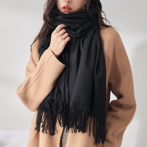 ⛄ Ponadczasowy, klasyczny model szala pasuje do każdego stroju. Model z ozdobnymi frędzlami.