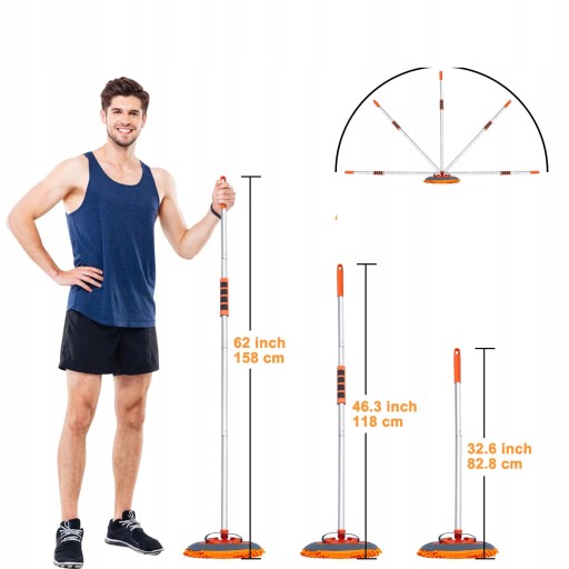 bardzo długa szczotka do mycia samochodu o długości 160 cm może z łatwością dotrzeć do dachu samochodu i innych wyższych miejsc, dzięki czemu nie musisz się tak dużo ruszać. Teleskopowa konstrukcja i regulowana w zakresie 180 stopni głowica mopa zapewniają większą elastyczność podczas mycia samochodu i zapewniają bezproblemowe wykonanie pełnego czyszczenia. Ten doskonały mop do mycia samochodu może skutecznie zaoszczędzić czas