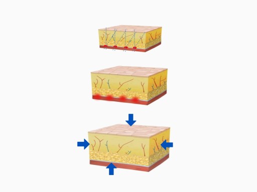 Podczas zabiegu urządzenie kontroluje energię i skupia się tylko na wymaganej warstwie skóry. W wyniku takiego działania termicznego powstają niewielkie punkty koagulacji, osiągające głębokość wskazaną przez operatora. Istotne jest to, że górne warstwy skóry, takie jak naskórek, nie ulegają uszkodzeniu. Taka zmiana temperatury w “gorących punktach” stymuluje ujędrnienie włókien kolagenowych w warstwie SMAS i przyspiesza produkcję nowych włókien kolagenu.