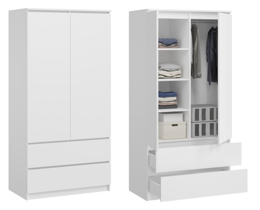 БЕЛЫЙ ШКАФ 90СМ MONIA ШКАФ ДЛЯ СПАЛЬНИ 2 ДВЕРИ 2 ЯЩИКА