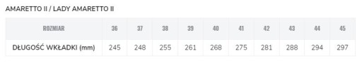 Łyżwy AMARETTO II przeznaczone są do jazdy rekreacyjnej. Półtwarda konstrukcja buta daje dobrą stabilizację kostki i stopy. Wygodny system sznurowania oraz rzep w okolicy kostki pozwala na dokładne dopasowanie do stopy. Dodatkowa klamra przytrzymuje nogę w odpowiedniej pozycji. Płozy wykonane są ze stali nierdzewnej, dzięki czemu przedłużona jest ich żywotność.