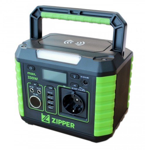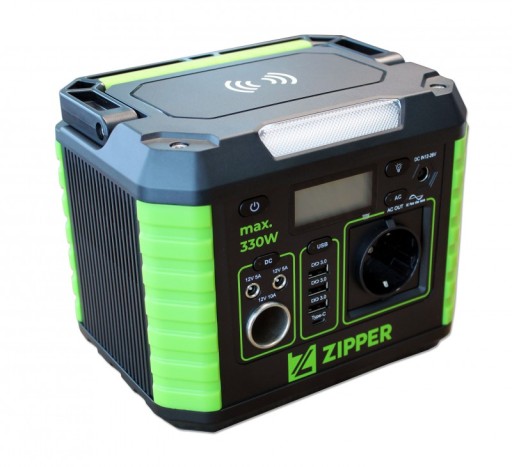Zipper ZI-PS330 to przenośna stacja zasilania do zasilania urządzeń nawet w przypadku braku dostępu do sieci elektrycznej. Ładowana jest przez panel słoneczny, zasilacz oraz zapalniczkę samochodową. Nadaje się do ładowania laptopa, smartfonu, GoPro itp.