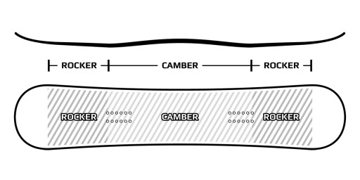 Micro camber między wiązaniami, z 5cm rockerem na dziobie i na ogonie daje wiele korzyści. Sekcja niskiego camberu między wiązaniami znacznie poprawia trzymanie krawędzi, a sekcja rockera na dziobie i ogonie pomaga unikać przypadkowego łapania krawędzi mniej doświadczonym snowboardzistom. Jedną z kluczowych zalet camrockera jest również jego świetne zachowanie się deski w kopnym śniegu.