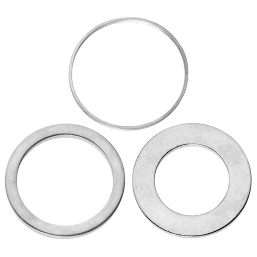 Zestaw stalowych pierścieni redukcyjnych w najczęściej stosowanych rozmiarach.