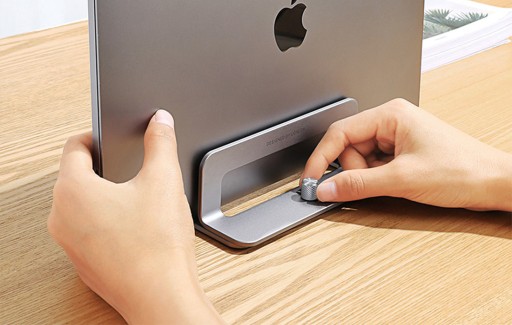 Produkt marki Ugreen pozwala na stabilne i bezpieczne przechowywanie laptopa. Za pomocą pokrętła w szybki i prosty sposób dostosujesz szerokość do grubości laptopa.