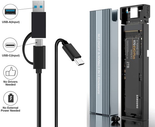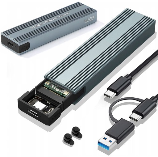 Nowa aluminiowa, wytrzymała obudowa wraz z adapterem pozwalająca podłączyć dysk SSD NVME oraz NGFF do komputera za pomocą portu USB 3.1 Typ C