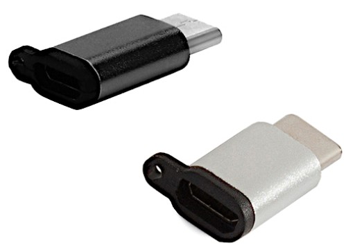 Adapter, przejściówka z micro USB B na USB typ C, daje możliwość używania kabla z wejściem typu B. Wystarczy podłączyć przejściówkę do kabla i naładować telefon lub inny sprzęt z wejściem C.