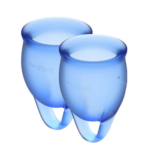 Zestaw dwóch kubeczków menstruacyjnych o pojemności 15 ml oraz 20 ml. Nowoczesne rozwiązanie dla kobiet w czasie menstruacji. Idealny zamiennik tamponów i podpasek. Kubeczki zostały wykonane z hipoalergicznego silikonu medycznego, który jest bardzo higieniczny, ekologiczny, bezpieczny dla ciała oraz łatwy w utrzymaniu czystości. Przed pierwszym użyciem zaleca się dezynfekcję kubeczka - wygotuj produkt w gorącej wodzie przez 5 minut.