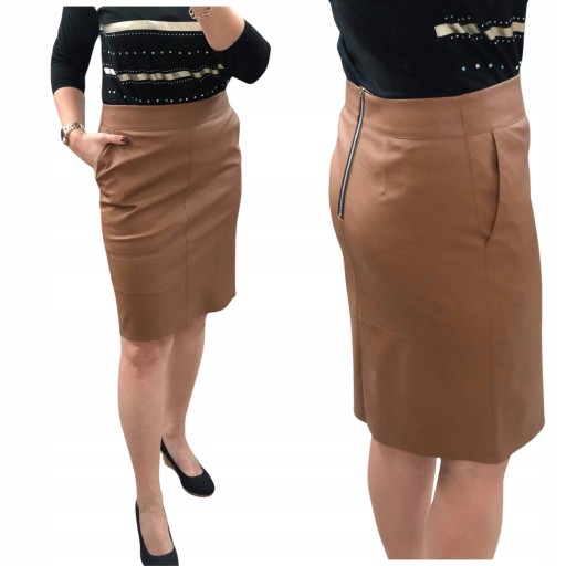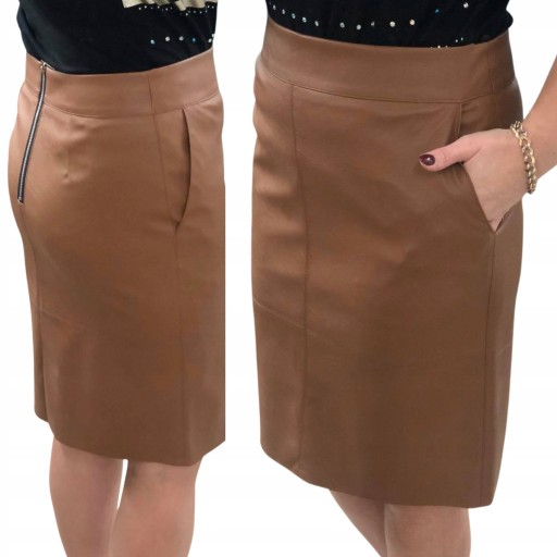 D72 SPÓDNICA EKOSKÓRA Z KIESZENIAMI C.BEŻ R.42