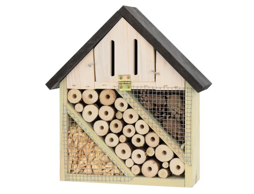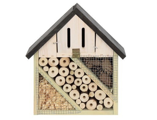 Niewielki domek dla owadów, znany również jako insekt hotel, to konstrukcja wykorzystywana przez ogrodników i hodowców, która pozwala na bezpieczne i nieinwazyjne pozyskanie przydatnych owadów do celów zapylenia kwiatów roślin owadopylnych. Budowla wykonana jest przede wszystkim z drewnianych desek, ale też zastosowane zostały inne materiały naturalne, takie jak trzcina, szyszka czy trociny. Domek dla owadów zapewni schronienie różnym gatunkom. Znajdą one w nim miejsce do złożenia jaj, schronienia się przed zwierzętami, deszczem, mrozem, słońcem czy po prostu będą wygodnym miejscem do nocnego odpoczynku.