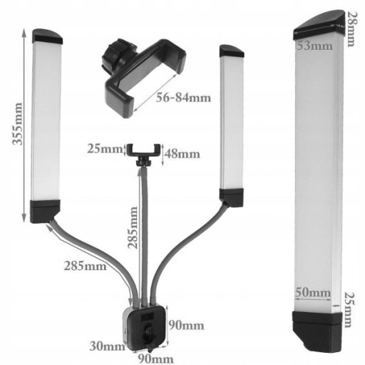 - lampa + torba + ramię z uchwytem na telefon + zasilacz