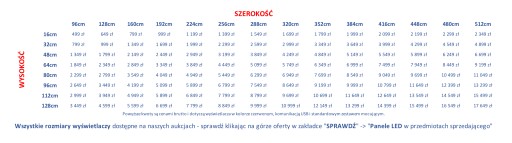 Poniżej tabelka z dostępnymi na naszych aukcjach wyświetlaczami LED: