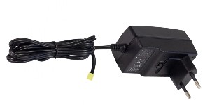 W komplecie znajduje się zasilacz wtyczkowy umożliwiający zasilenie zbiorcze urządzeń. Zasilacz ten można zastąpić zasilaczem na szynę DIN, np DIN30W15 , lub HDR-30-15. Zasilacze na szynę DIN posiadają regulację napięcia, co jest istotne jeśli mamy długie przewody które powodują duże spadki napięcia. Jeśli długość przewodów wynosi np. 60 metrów, napięcie zasilacza można zwiększyć do 17V. Jeśli przewody są bardzo długie, np. 100 i więcej metrów, można zastosować zasilacz na szynę DIN o jeszcze wyższym napięciu, np. DIN30W24 lub HDR-30-24. Napięcie 24V nie uszkodzi urządzeń, a jak pokazały testy, możliwe jest działanie tego wideodomofonu nawet przy długości kabla powyżej 300 metrów!