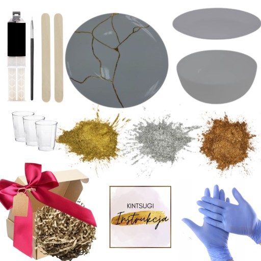 Zestaw zawiera wszystkie potrzebne produkty do wykonania ozdobnej ceramiki metodą KINTSUGI:
