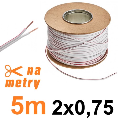 PRZEWÓD DWUŻYŁOWY, KABEL DO TAŚM LED JEDNOKOLOROWYCH MONO O PRZEKROJU 2x0,75mm² BIAŁY 5MB MIEDZIANY