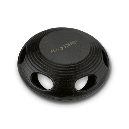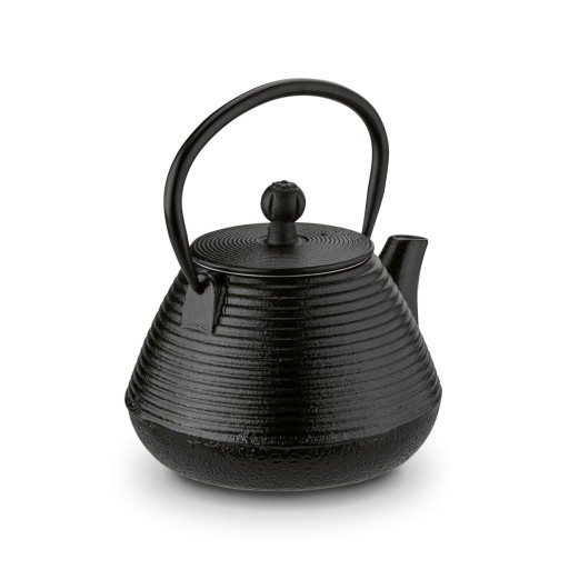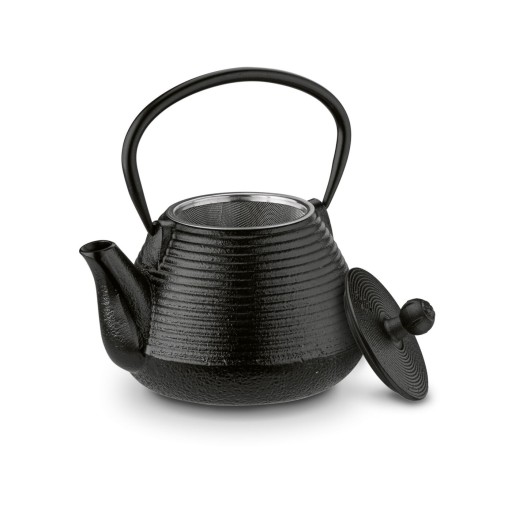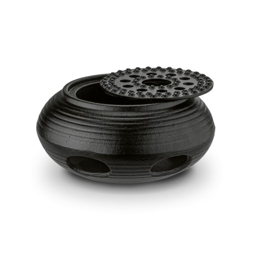 Czarny imbryk do herbaty z zaparzaczem Konighoffer Hanako Strip 1 l wykonany jest z żeliwa. W zestawie znajduje się również nierdzewny zaparzacz. Dzięki niemu oddzielisz susz od wrzątku i sprawnie poradzisz sobie z przerwaniem procesu parzenia esencji. Wnętrze czajniczka wykończono nietoksyczną emalią w kolorze czarnym. Ułatwi ci ona pielęgnację i zadba o walory naparu. Model długo trzyma ciepło. Możesz ustawić go na podgrzewaczu (do 60 minut!). Duża rączka imbryka ułatwia jego przenoszenie, a także nalewanie herbaty do kubków i filiżanek. Pokrywka korpusu umożliwia wydajną regulację pary wewnątrz. W niezależnej opinii J.S. Hamilton model spełnia wszelkie normy europejskie i może być stosowany do bezpiecznego kontaktu z żywnością. Podgrzewacz do dzbanka Konighoffer Hanako Strip również jest czarny i żeliwny. Z nim sprawisz, że herbata w imbryku będzie długo ciepła. Zdobędziesz też model stabilny, solidny i dobrze pasujący do twojego serwisu deserowego. Co więcej, upewnisz się, że włożona do środka świeczka tealight się nie przewróci. Będzie miała też odpowiedni dopływ powietrza, które podtrzyma jej płomień. Z całą pewnością zyskasz idealną podstawkę z podgrzewaczem pod imbryk żeliwny Hanako. Warto wybrać ten komplet, by całe spotkanie towarzyskie zawsze było udane, a zapas świeżo parzonej herbaty bezpieczny. Produkt ma rekomendację Ewy Wachowicz. Jako ambasadorka marki Konighoffer, gorąco i z uśmiechem poleca go ona do domowego użytku. Razem z nim zdobędziesz twój przepis na dom. To jedna z najlepszych opcji w tej kategorii!