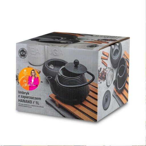 Czarny imbryk do herbaty z zaparzaczem Konighoffer Hanako Strip 1 l wykonany jest z żeliwa. W zestawie znajduje się również nierdzewny zaparzacz. Dzięki niemu oddzielisz susz od wrzątku i sprawnie poradzisz sobie z przerwaniem procesu parzenia esencji. Wnętrze czajniczka wykończono nietoksyczną emalią w kolorze czarnym. Ułatwi ci ona pielęgnację i zadba o walory naparu. Model długo trzyma ciepło. Możesz ustawić go na podgrzewaczu (do 60 minut!). Duża rączka imbryka ułatwia jego przenoszenie, a także nalewanie herbaty do kubków i filiżanek. Pokrywka korpusu umożliwia wydajną regulację pary wewnątrz. Produkt ma rekomendację Ewy Wachowicz. Jako ambasadorka marki Konighoffer, gorąco i z uśmiechem poleca go ona do domowego użytku. Razem z nim zdobędziesz twój przepis na dom. To jedna z najlepszych opcji w tej kategorii!