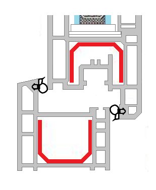 W starszych oknach można spotkać się z montażem uszczelki na narożach na tzw. "owijkę", czyli uszczelka na narożu nie jest przycinana pod kątem 45 stopni i trwale łączona ze sobą , tylko zgięta jest pod kątem 90 stopni i wciśnięta w rowek montażowy. W starszych oknach był to prawidłowy montaż uszczelki. W nowych oknach uszczelki na narożach przycina się pod kątem 45 stopni i trwale ze sobą łączy ( do tego celu używamy kleju Faster ). Nowy sposób montażu wprowadzono w celu lepszego uszczelnienia okna na narożach, ponieważ montując na narożu okna zgiętą uszczelkę ( stary sposób montażu) powoduje to jej zgrubienie ( uszczelka traci swoją elastyczność) i szybko w tym miejscu okno zaczyna przewiewać. Drugim minusem starego sposobu montażu jest to, że zgięta pod kątem 90 stopni uszczelka nie trzyma się dobrze w rowku montażowym i często z niego wypada powodując rozszczelnienie okno.
